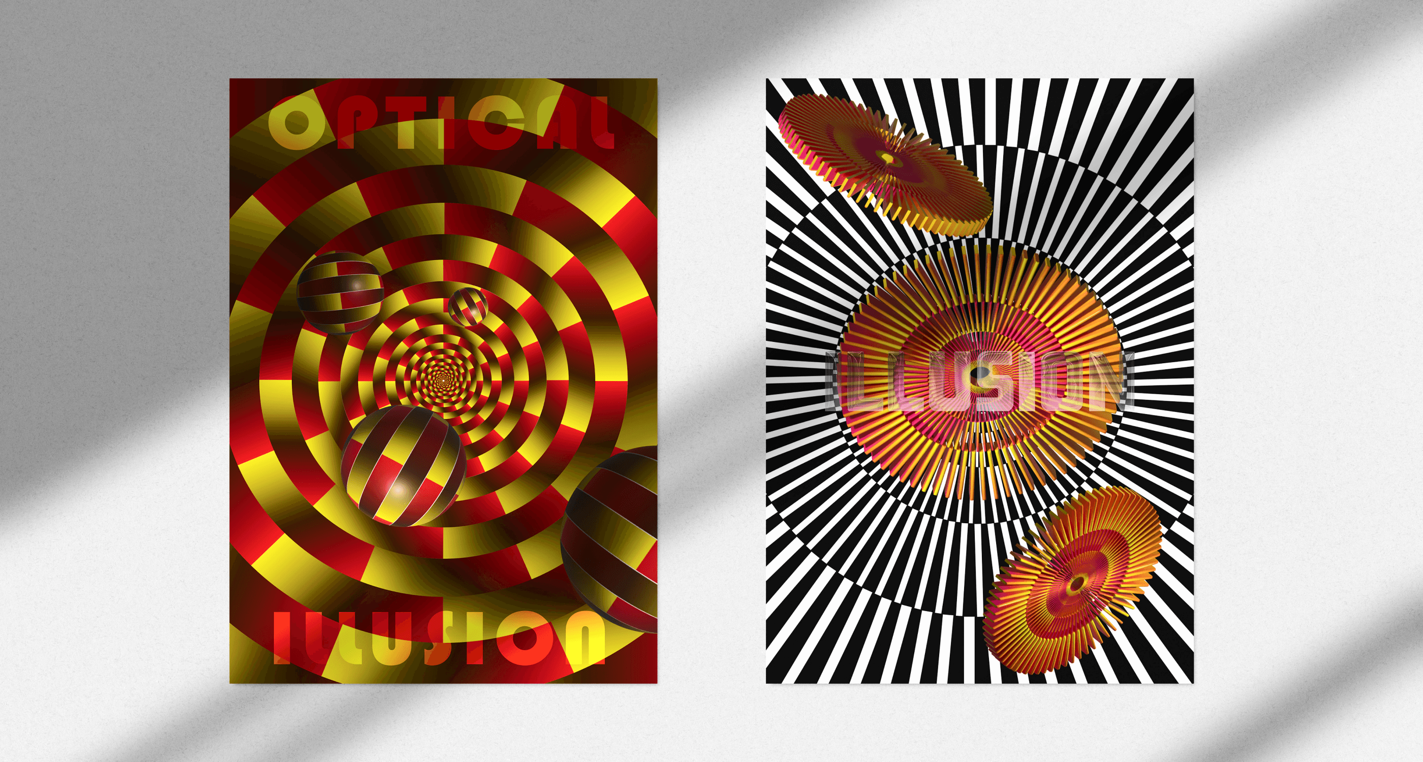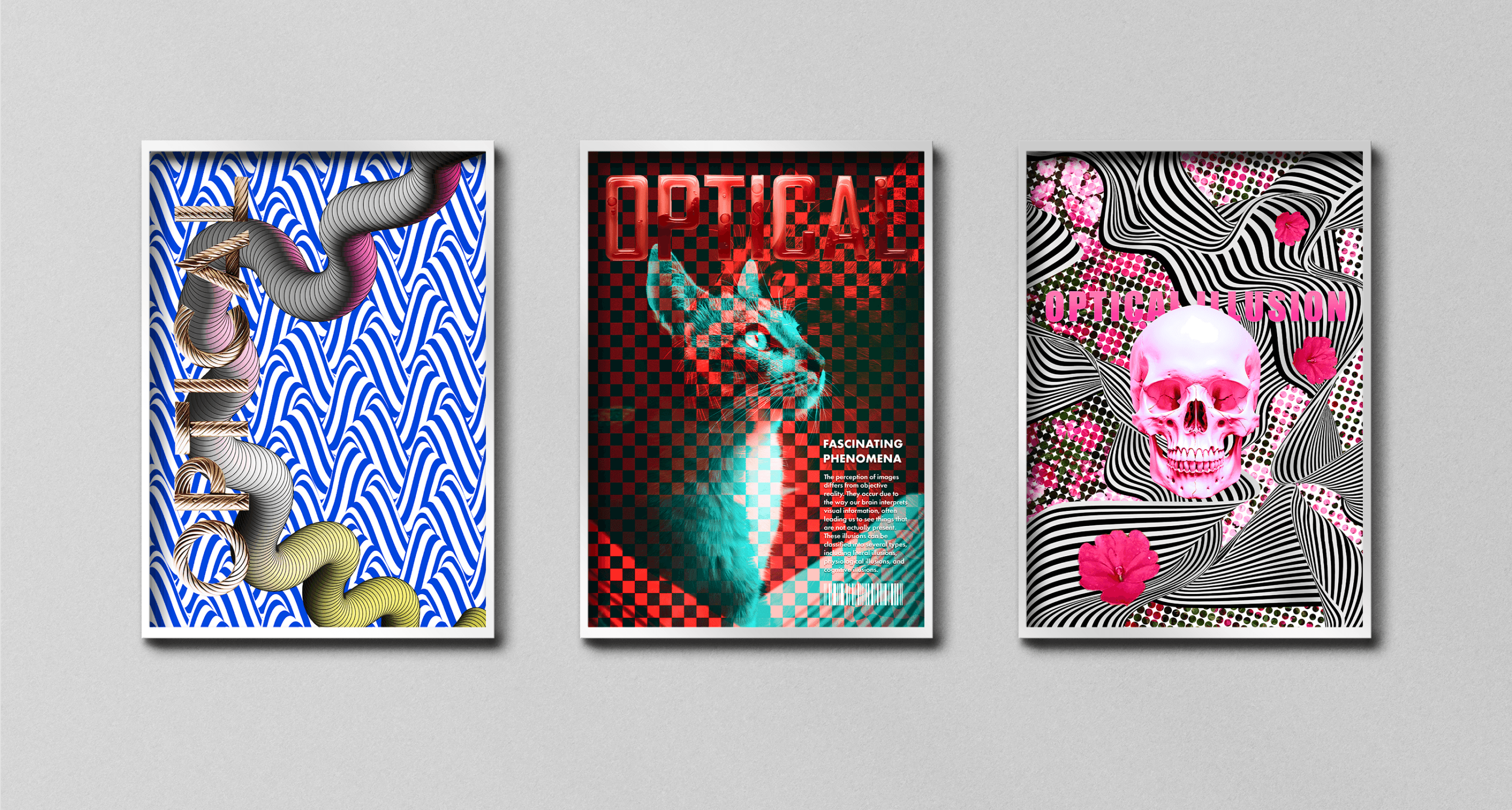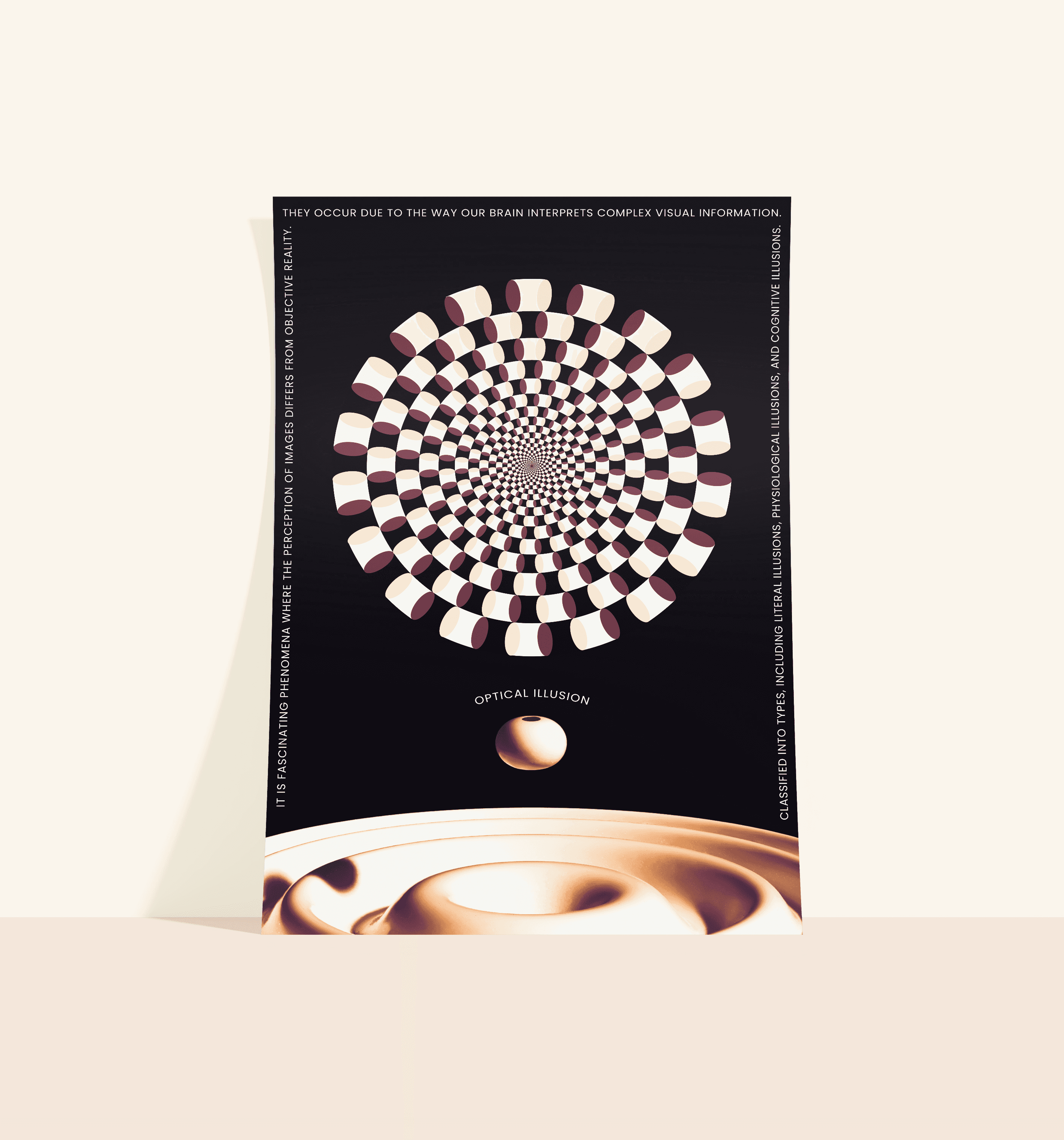 Optical illusion is a visual effect that tricks the brain into seeing something different from reality, often by manipulating shapes, colors, and patterns. I have applied optical illusion elements to create designs, using distortion, layering, and contrast.