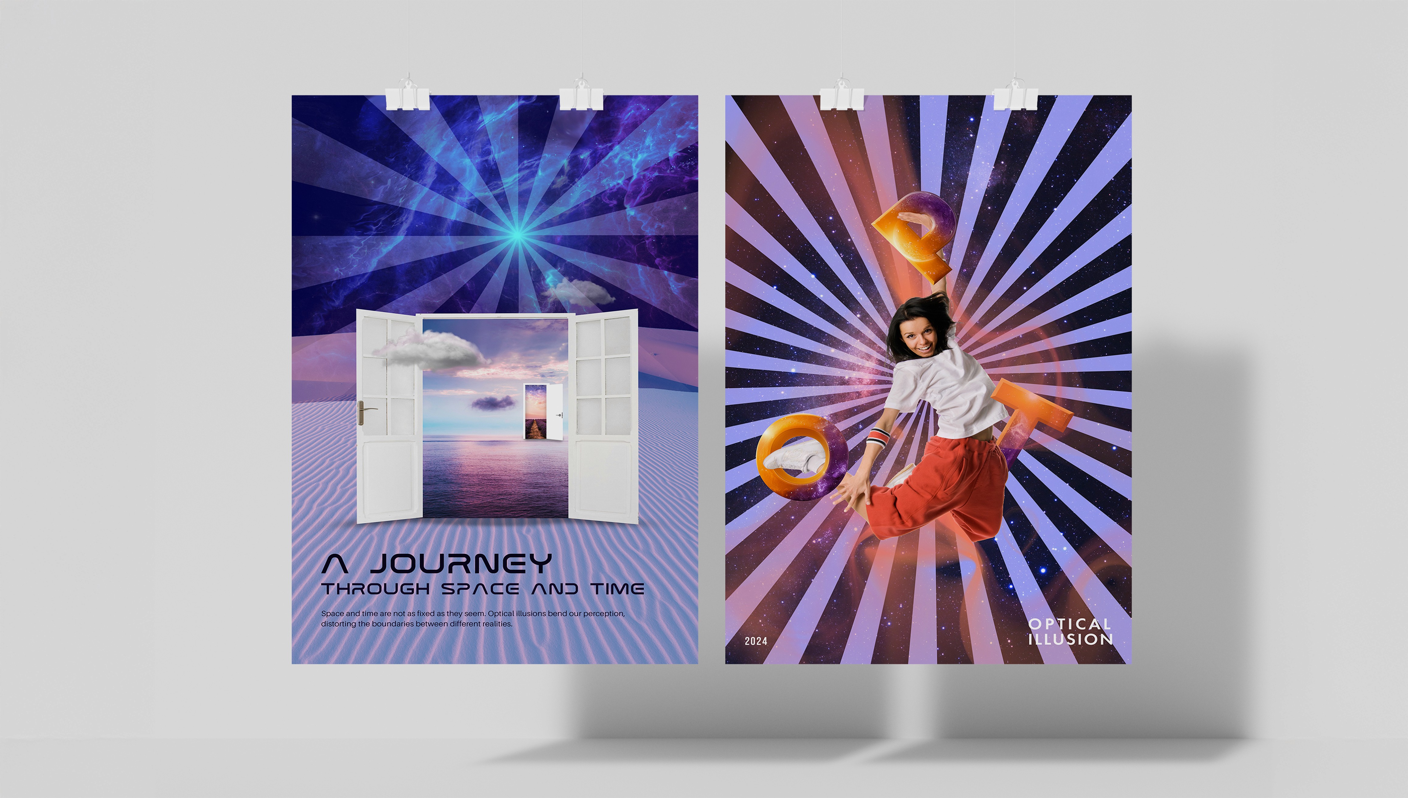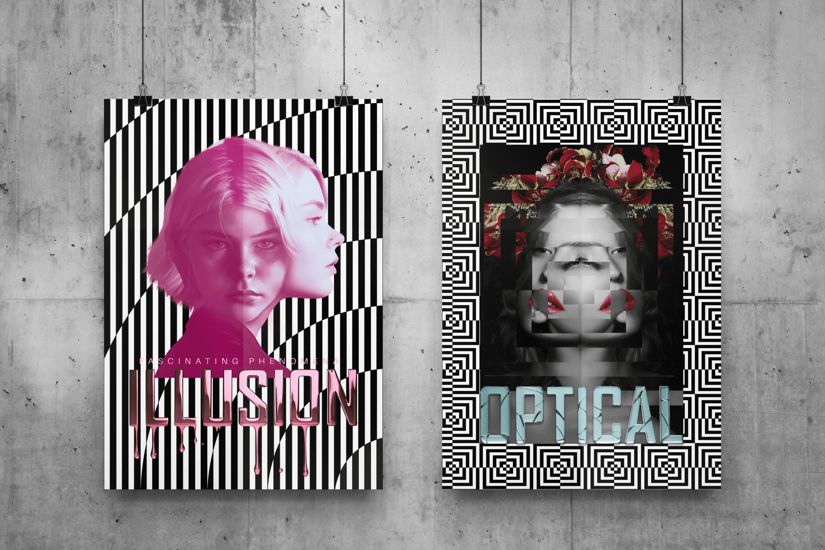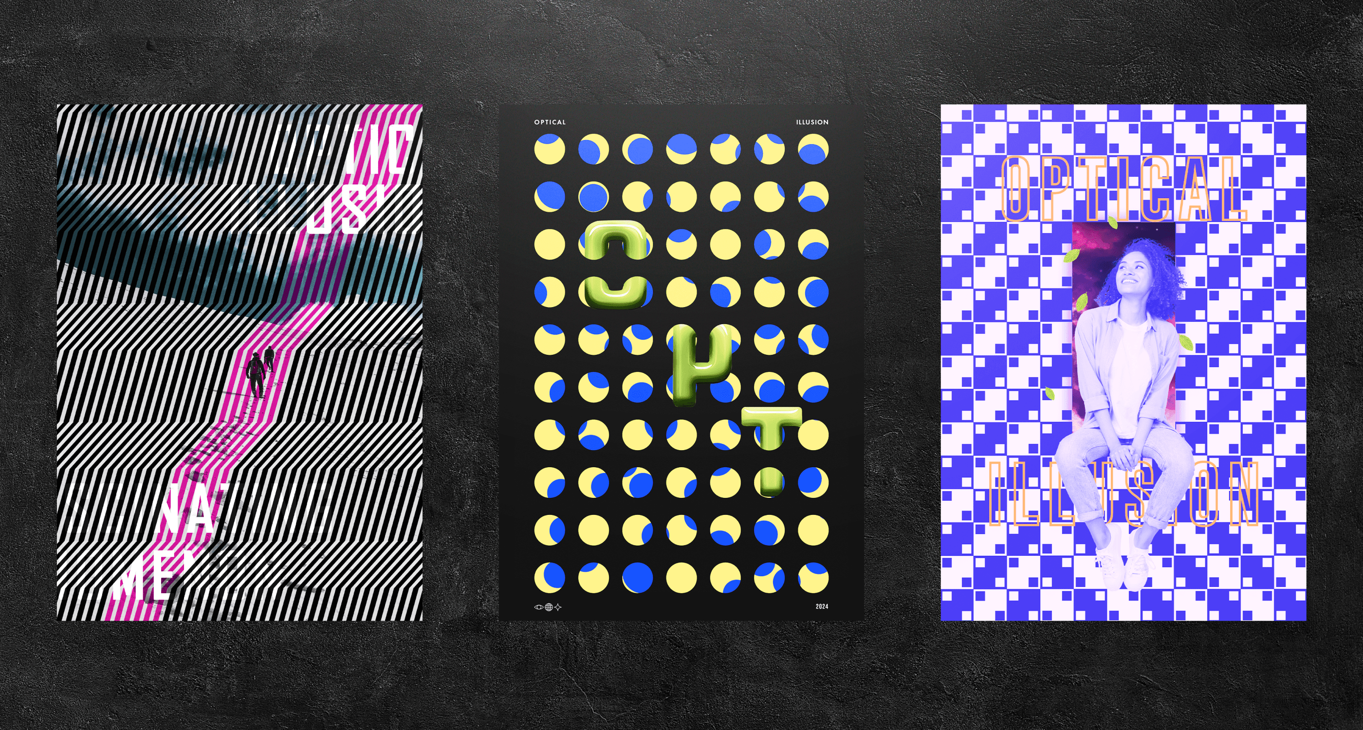 Optical illusion is a visual effect that tricks the brain into seeing something different from reality, often by manipulating shapes, colors, and patterns. I have applied optical illusion elements to create designs, using distortion, layering, and contrast.
